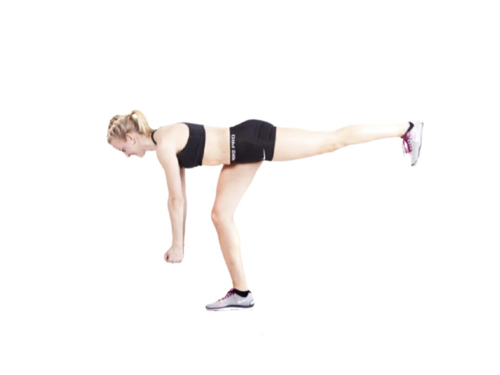 - While moving your core, move that leg backwards to a lower height. Go less than that.
