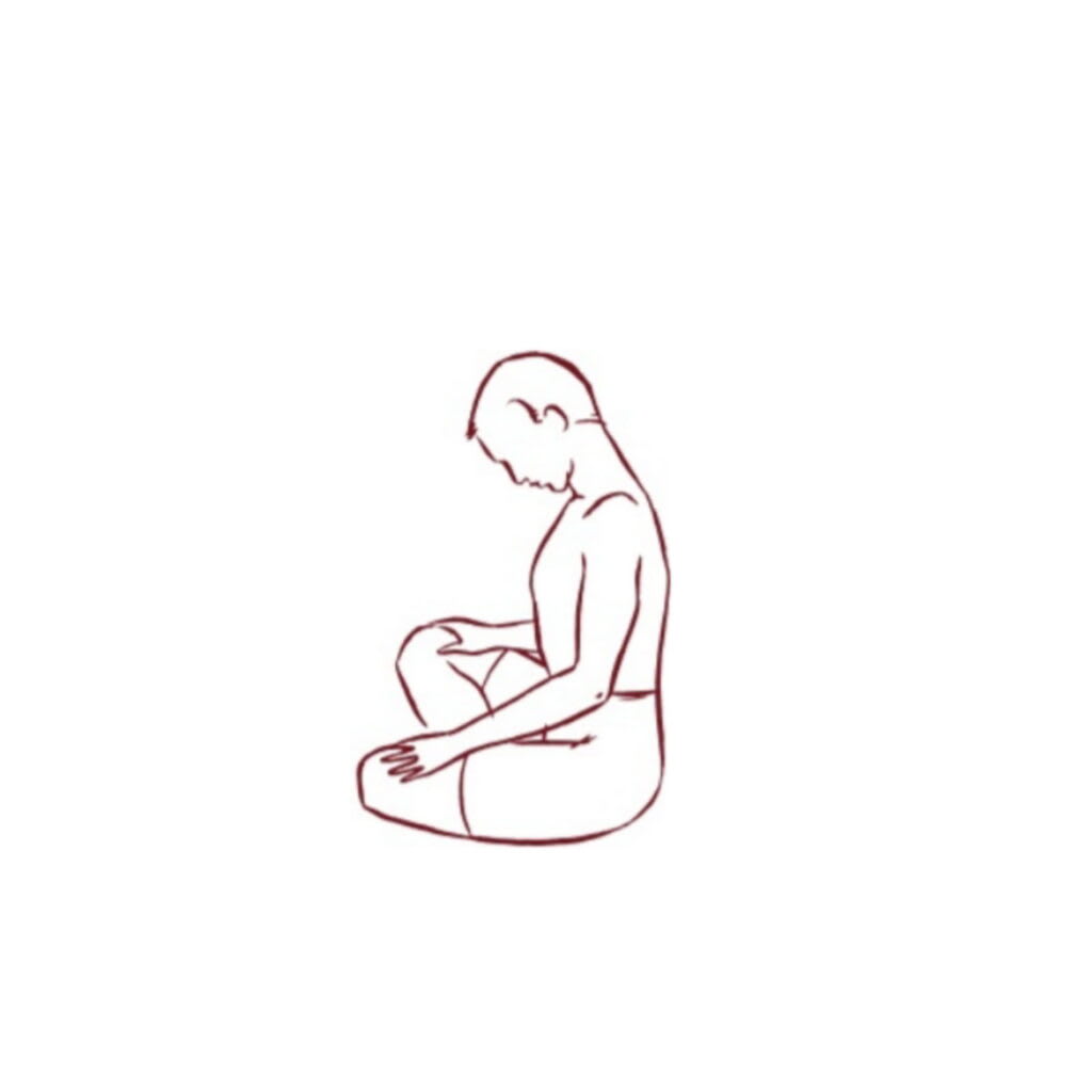 - Sit with your spine comfortably extended. Keep your eyes closed or downcast.